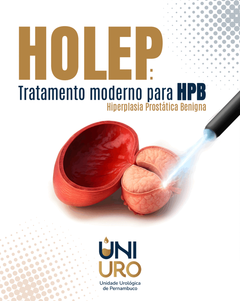🔹 Conheça o HoLEP, um tratamento moderno e minimamente invasivo para a HPB, que utiliza o laser de hólmio para remover o tecido prostático obstrutivo através da uretra, sem a necessidade de cortes externos. Essa técnica é considerada segura e eficaz para próstatas de qualquer tamanho, proporcionando uma rápida recuperação, com menos dor, menor período de hospitalização e retorno mais rápido às atividades.